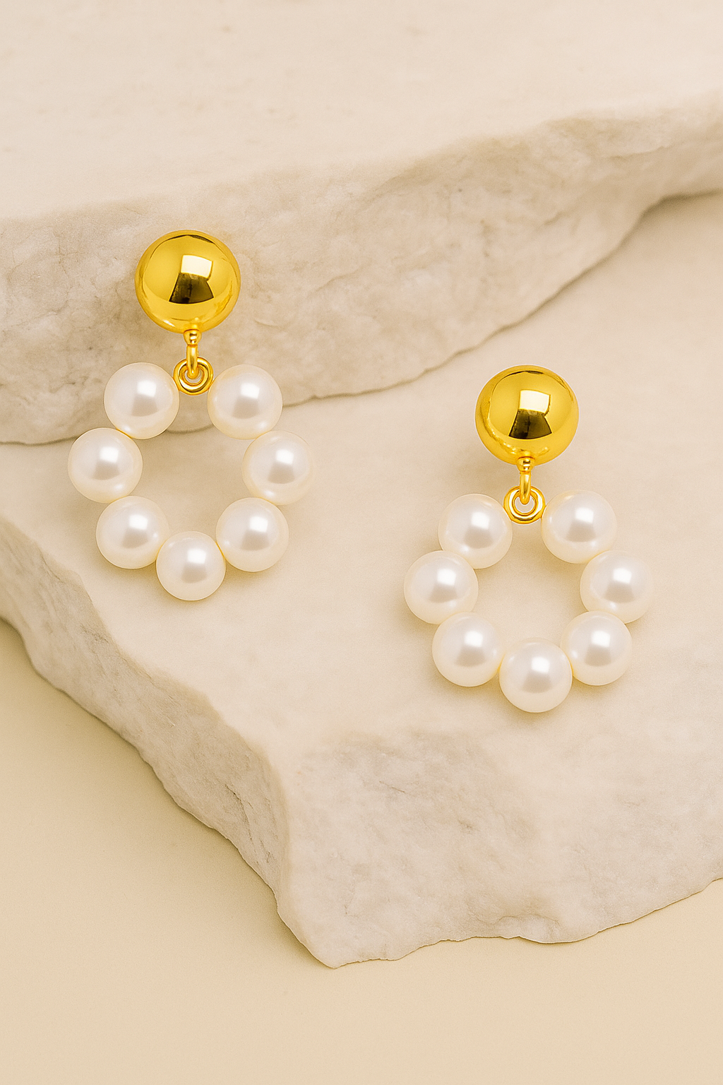 Golden Petals earrings reimagine classic pearl jewellery with a fresh, floral-inspired design. Featuring a petal-shaped arrangement of glowing faux pearls suspended from sleek gold studs, they offer a perfect balance of elegance and modern charm. Lightweight and radiant, these earrings elevate everything from everyday outfits to evening wear — ideal for those who love timeless style with a contemporary twist.