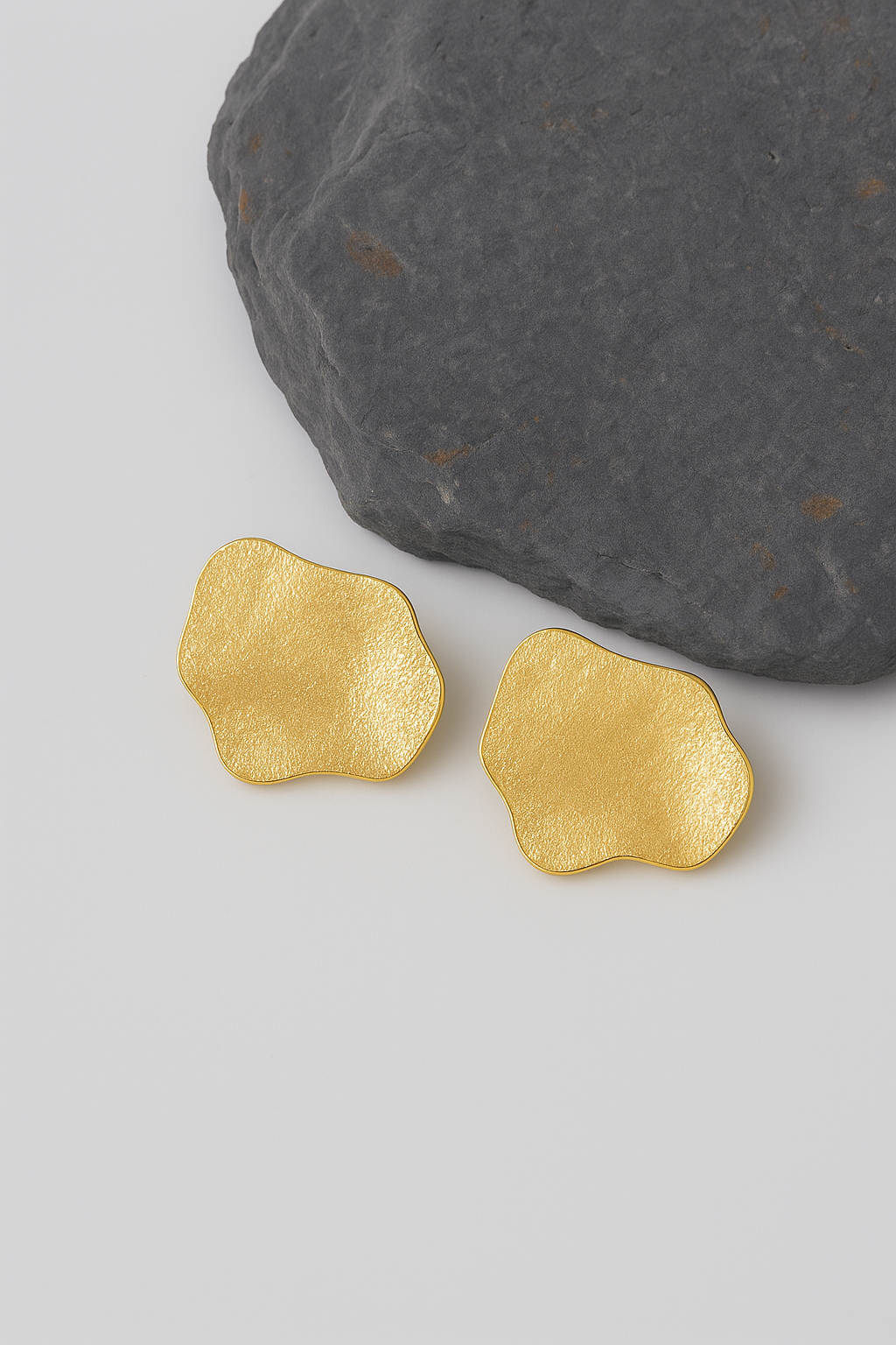 Leaflet Gold earrings embrace the organic beauty of asymmetry and texture. Inspired by falling leaves and golden petals, their soft, irregular shapes and matte finish evoke nature’s quiet elegance. Lightweight and sculptural, these gold-toned studs add a poetic, contemporary accent to both everyday wear and elevated looks — perfect for those who love understated artistry.