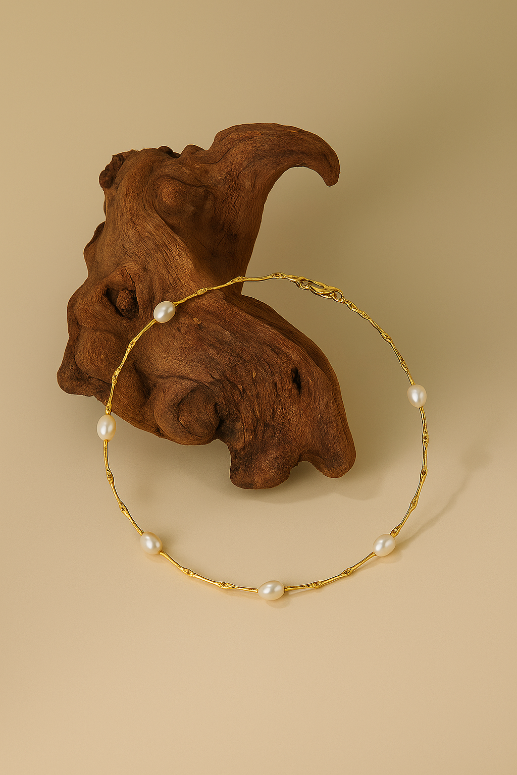 Discover quiet luxury with the Pearl Whispers Necklace — a refined line of luminous freshwater pearls strung along a whisper-thin gold thread. Light as air and gently curved to follow the neckline, this minimal piece offers effortless elegance. Ideal for layering or wearing solo, it’s a timeless addition to any jewellery collection for those who favour subtle sophistication.