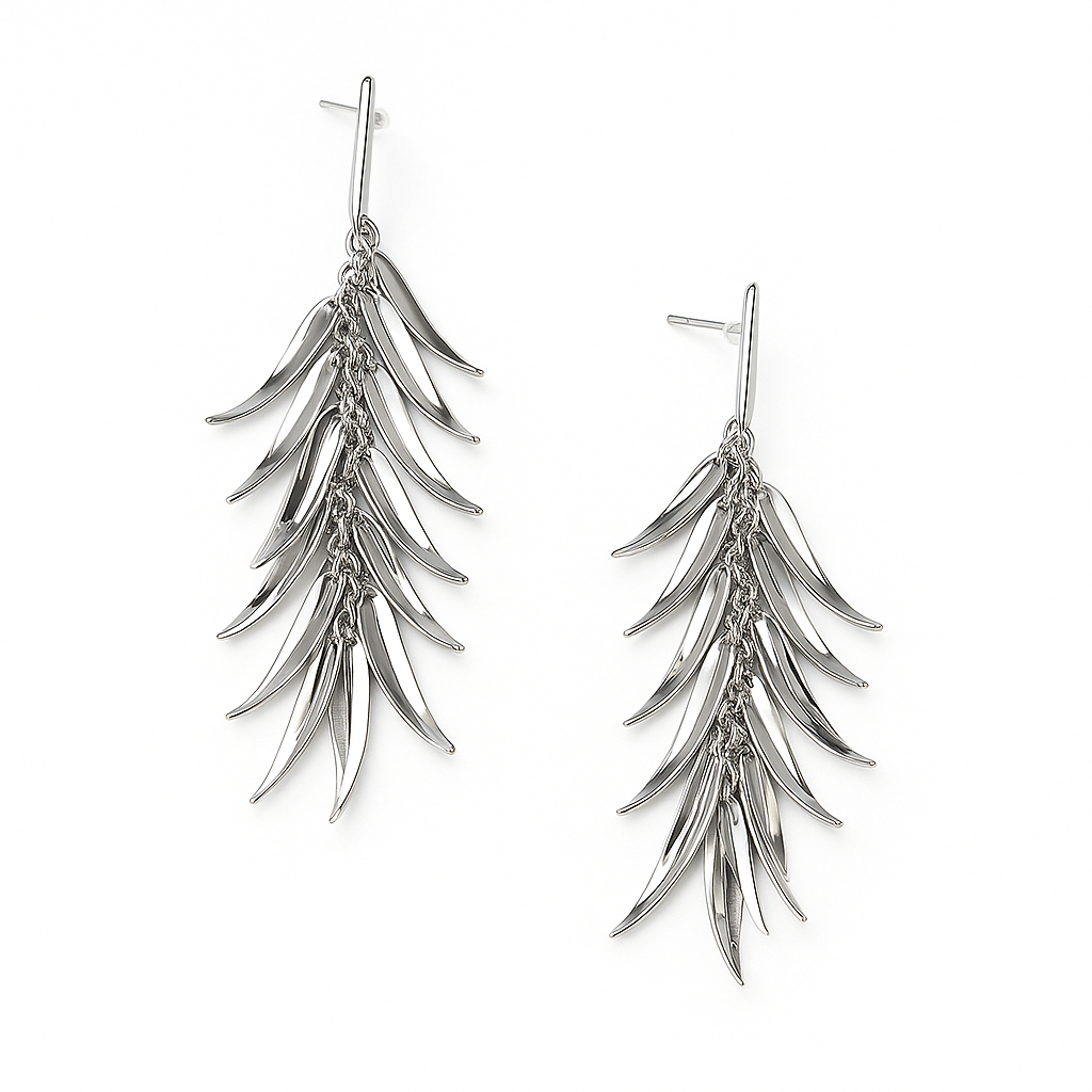 Inspired by the graceful fall of fern fronds, the Silver Fern Earrings feature sculptural silver silhouettes that catch the light with every movement. Their cascading shape adds a delicate, nature-inspired elegance, while the sleek metallic finish brings a modern edge. Lightweight and striking, these drop earrings are perfect for both everyday styling and special occasions.